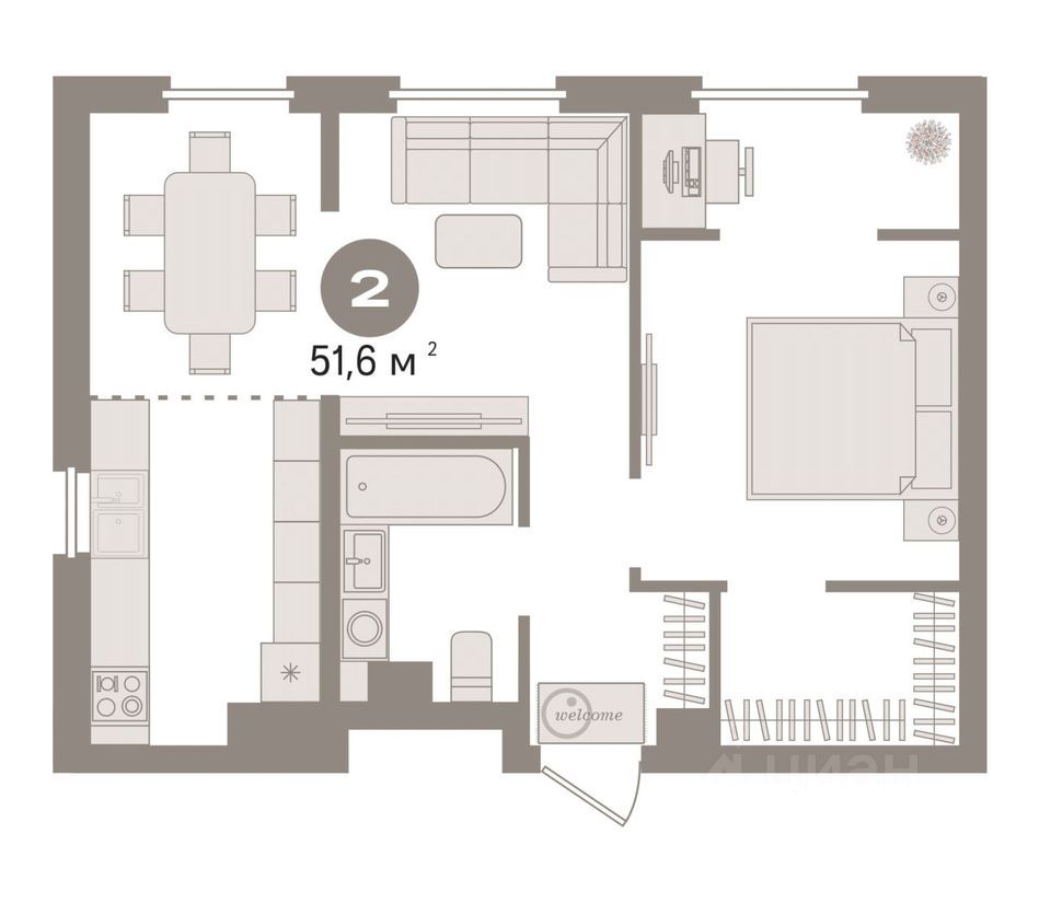 При продаже остаётся Кухонный гарнитур, варочная поверхность, стиральная машина, вытяжка, кондиционер, диван, стол, шкаф, сантехника в санузле (ванна, раковина, унитаз), гардероб.