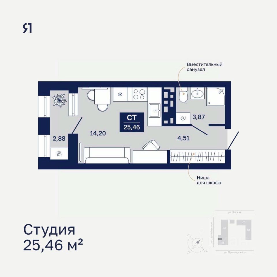 Общая площадь25,46 м²