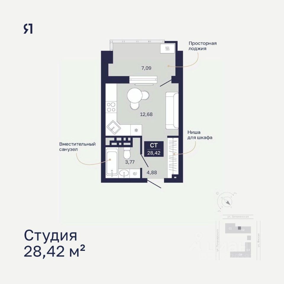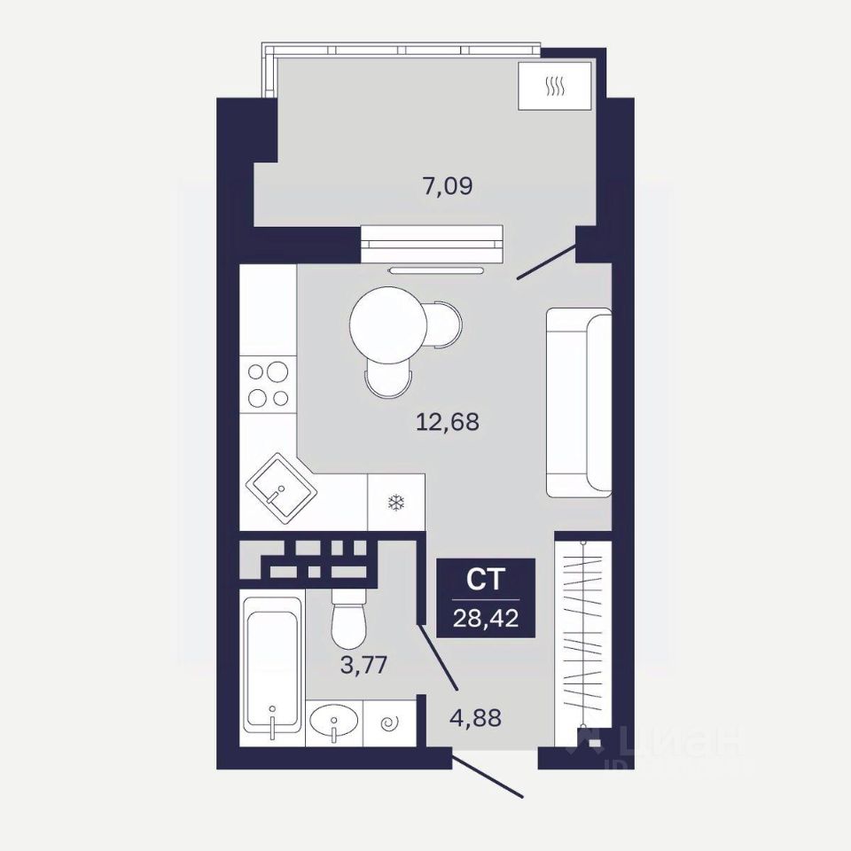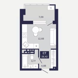 Общая площадь28,42 м²