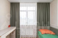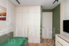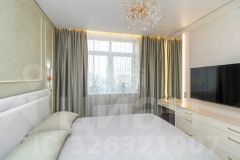 Спальня оборудована удобной гардеробной зоной с отдельным входом. Просторная двухспальняя кровать с ортопедическим матрасом, две подвесных тумбочки, комод с туалетным столиком и зеркалом с подсветкой.
