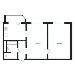 Уютная двухкомнатная квартира площадью 56 кв.м на восьмом этаже. Жилая площадь 40 кв.м. Кухня площадью 10 кв.м с выходом на балкон. Санузел совмещенный. Вход на кухню из комнаты через прямоугольную арку. высота потолков 2,5 м.