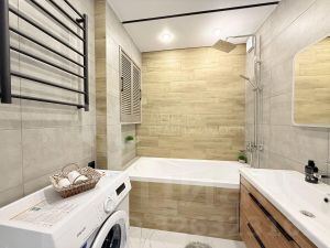 Квартира полностью готова к проживанию: сделан дизайнерский ремонт из качественных материалов,в коридоре и сан. узле теплый пол, установлена новая сантехника, есть вся необходимая мебель и бытовая техника. Остается всё, что вы видите на фото.