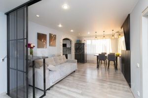 Продаётся полностью укомплектованная 3комн. квартирараспашонка, общая площадь 85.7 м². Большая кухнягостиная 23 м², две отдельные светлые спальни, одна из которых детская, и хозяйская спальня со своей продуманной гардеробной. Два просторных балкона, окна на обе стороны — много света и отличная перекрёстная вентиляция