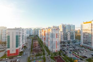 Новый микрорайон с ухоженными дворами, новой школой во дворе, рядом поликлиники, фитнесклубы и ТЦ "Остров". Рынок "Михайловский" с фермерскими продуктами в пешей доступности. Широкие тротуары и велодорожки — удобно для прогулок и спорта