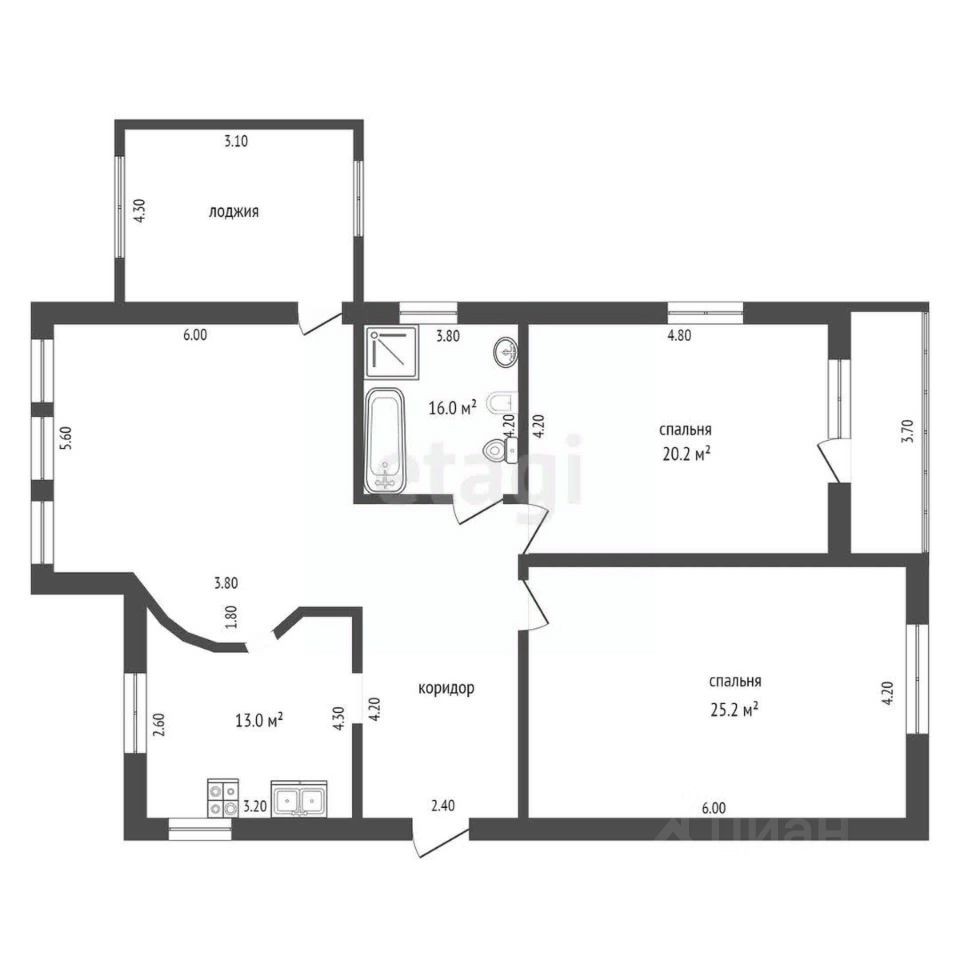 В квартире две спальни, уютная кухня + гостиная, просторная прихожая и холл, один сан.узел, лоджия и балкон.