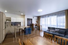 Уважаемые покупатели! Вашему вниманию предлагается стильная квартира (109 кв.м.) в Центре города в современном жилом комплексе Даудель! В квартире выполнен ремонт по дизайн проекту с использованием дорогих материалов! Полы по всей квартире паркетная доска, стены обои в пастельных тонах. Квартира с очень удобной и функциональной планировкой, большая кухня-гостинная, две детских комнаты, спальня, гардеробная, большой санузел, два французких балкона, одна застекленная лоджия. Квартира полностью готова для проживания. На просторной площадке - 3 квартиры. 2 лифта : грузовой и пассажирский. Отлично оборудован двор для детей и взрослых.