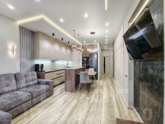Большое преимущество это два санузла. В квартире 3 лоджии, все утеплены и качественно отделаны штукатуркой. Стеклопакеты установлены двухкамерные. На балконе в кухне-гостиной сделан дополнительно тёплый пол.