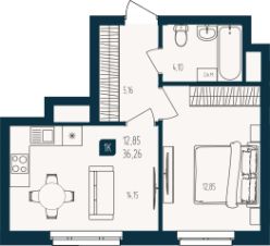 Продаётся 1-комнатная квартира в строящемся доме (Дом Башня (ГП-1)), срок сдачи: III-кв. 2027, общей площадью 36.26 кв.м., на 23 этаже. Новый жилой комплекс "Квартал Мятный" от Специализированного застройщика "Юпитер" расположен по адресу: г. Тюмень по ул. Кулибина.