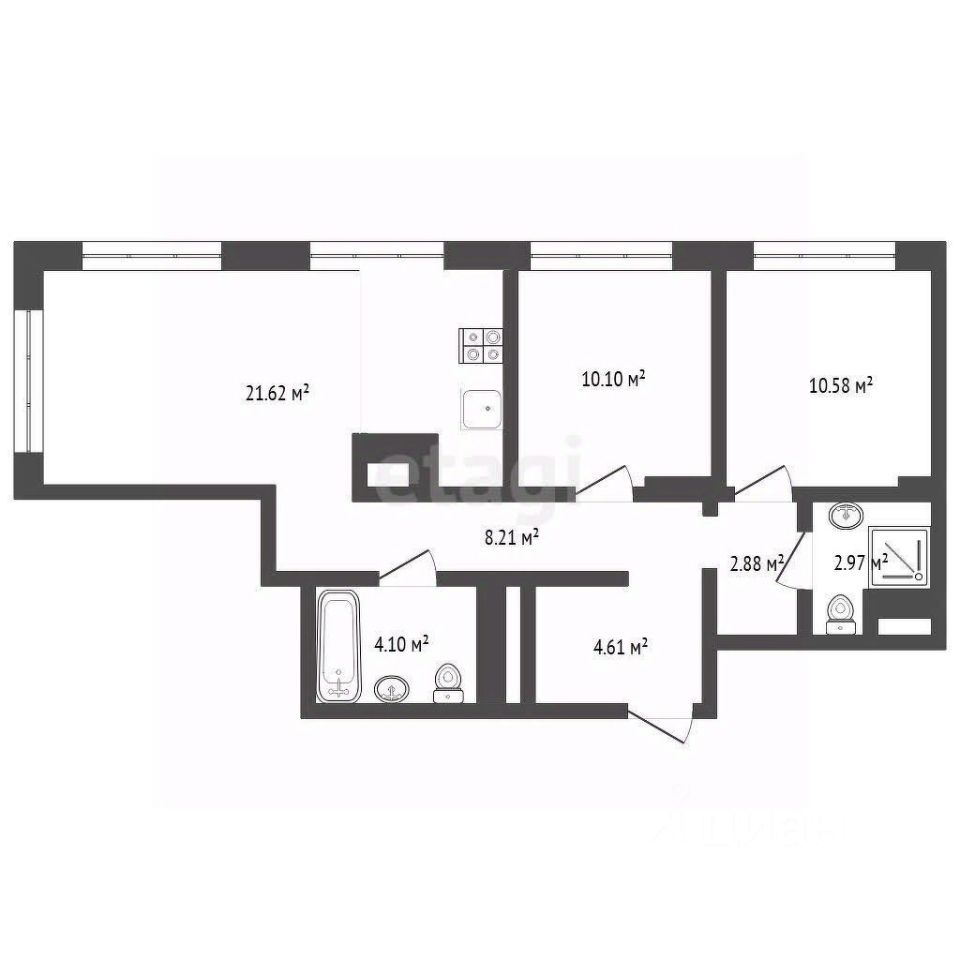 Два санузла, продуманные ниши под шкафы, эргономичные входные группы.
