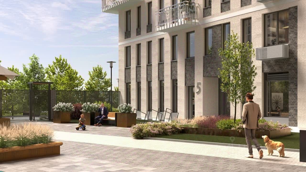 Центральным элементом благоустройства стал пешеходный "Бульвар Традиций" — просторная зона для прогулок, занятий спортом и отдыха, полностью изолированная от автомобильного движения. При этом дворы остаются приватными, сохраняя уют для жителей. Архитектура комплекса сочетает эстетику и функциональность: фасады из кирпича обеспечивают тепло- и шумоизоляцию, а их ритмичный рисунок и плавные линии создают гармоничную среду. Входные группы с прозрачными витражами наполняют парадные естественным светом, а теплые тамбуры с домофонами повышают комфорт в любое время года. Каждая парадная имеет индивидуальный дизайн и оборудована зонами для колясок и велосипедов с ограниченным доступом.