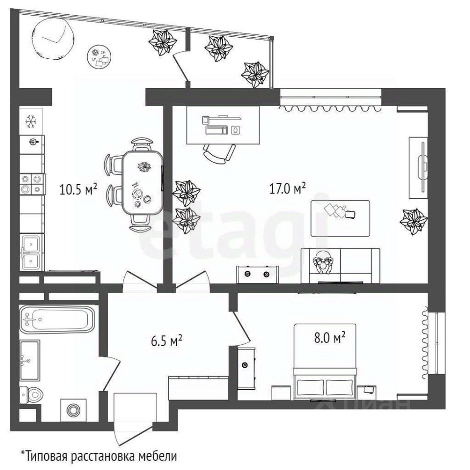 Продаётся 2-комнатная квартира, 43,5 м², 9 этаж.