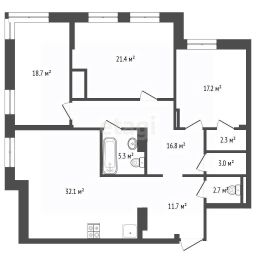 Планировка продумана для комфортного проживания семьи: приватная спальная зона с гардеробной отделена от гостевой части, есть две изолированные детские комнаты. Осталось выбрать дизайн ремонта по Вашему вкусу и жить в удовольствии с шикарными видами.