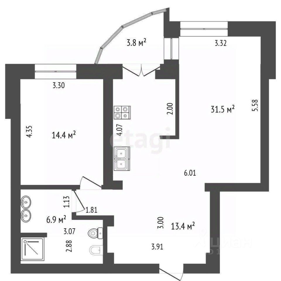 Общая площадь квартиры составляет 66,2 кв. метра, расположена на 3-м этаже.