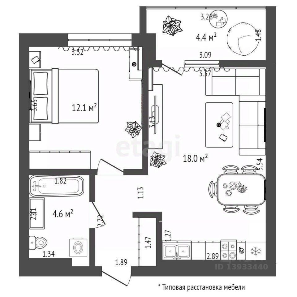 Эта квартира порадует вас своей продуманной планировкой: просторная кухня-гостиная площадью 18 кв.м, уютная спальня размером 13. кв.м и великолепная лоджия 5.5 кв.м., .