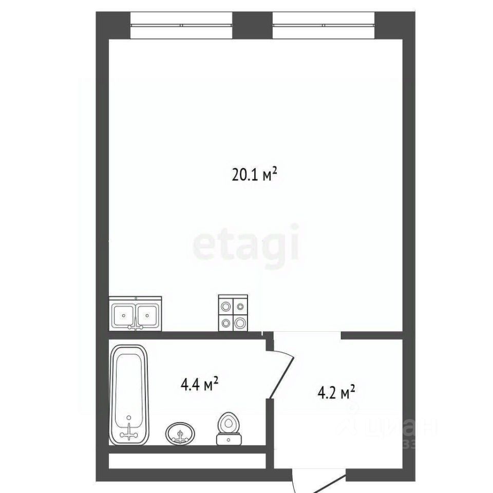 Площадь: 28,7 м²