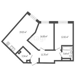 - Площадь квартиры 62,2 кв.м.