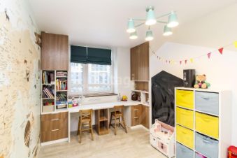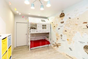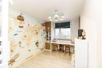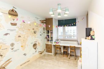Сан узел совмещен, установлен теплый пол, выложен керамогранитом и установлена качественная сантехника и встроенная мебель. Обои в детской комнате покрыты специальным прозрачным лаком, что еще больше из бережет от вандальных действий и легко моются.