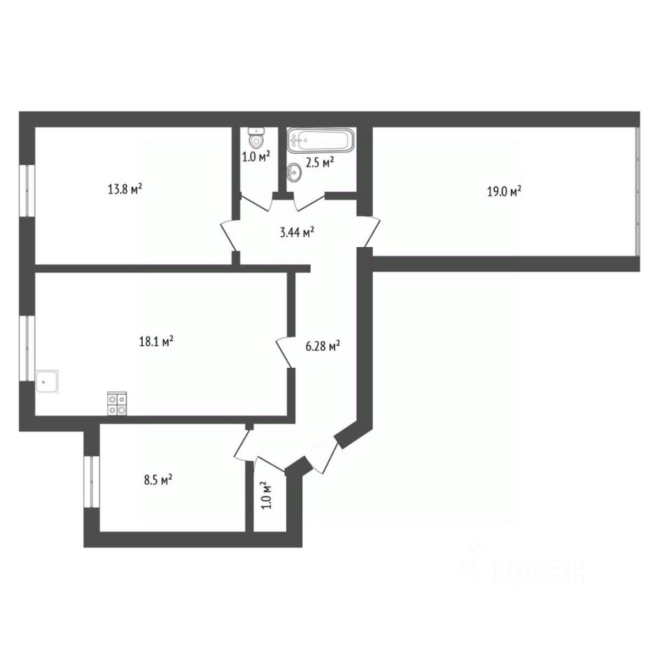 • Пространство: Кухня-гостиная для уютных вечеров и три изолированные спальни. Санузел раздельный.