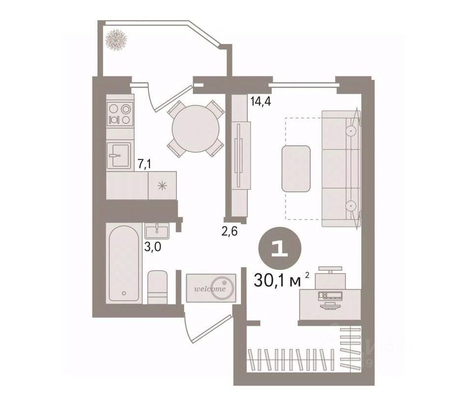 Продаётся однокомнатная квартира площадью 30,1 кв.м. с современным ремонтом и мебелью в ЖК "Новоантипинский". Удобная планировка: просторная комната, есть гардеробная, окна выходят во двор. В стоимость квартиры входит: кухонный гарнитур, варочная поверхность, духовой шкаф, вытяжка, сантехника в санузле (ванна, раковина, унитаз, смесители).