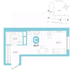Площадь квартиры 26.51 м2 . Высота потолка 2,7 м.