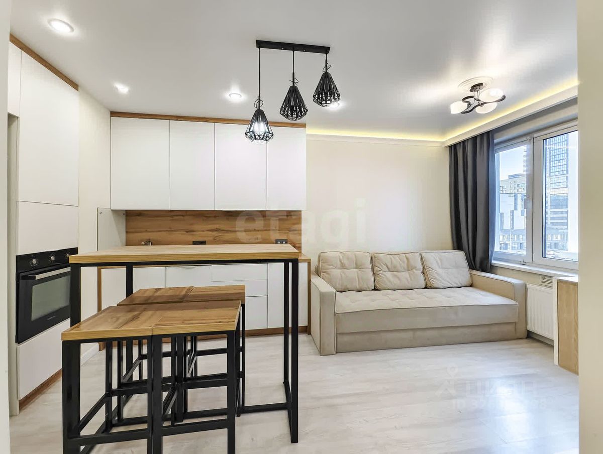 Квартира формата 1+ с современным ремонтом расположена в популярном жилом комплексе "Европейский" от застройщика "Брусника". Объект находится в отличном состоянии: ровные стены под обоями, качественный ламинат и натяжные потолки со встроенным освещением. Санузел совмещенный, отделан керамогранитом, в квартире предусмотрена гардеробная зона. Жилой комплекс отличается развитой инфраструктурой: в шаговой доступности находятся детские сады, школа, разнообразные игровые площадки, супермаркеты, кафе и сервисные службы. Район обладает удобной транспортной доступностью с выездом на основные магистрали, что обеспечивает быструю связь со всеми районами города. Данное предложение представляет собой оптимальное сочетание готовности к проживанию, выгодной цены и перспективного расположения в качественно построенном комплексе.