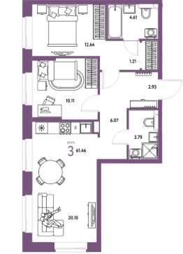 Продаётся 3-комнатная квартира в строящемся доме (Дом "Перспективный" (ГП-28)), срок сдачи: II-кв. 2028, общей площадью 61.46 кв.м., на 4 этаже. Новый микрорайон "Домашний" от группы компаний "Страна Девелопмент" расположен в Калининском округе Тюмени, в районе аэропорта "Плеханово".
