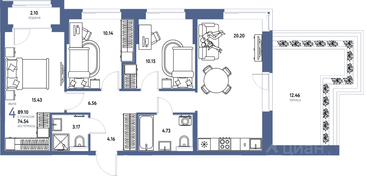 Продаётся 4-комнатная квартира в строящемся доме (Дом "Перспективный" (ГП-28)), срок сдачи: II-кв. 2028, общей площадью 89.1 кв.м., на 12 этаже. Новый микрорайон "Домашний" от группы компаний "Страна Девелопмент" расположен в Калининском округе Тюмени, в районе аэропорта "Плеханово".