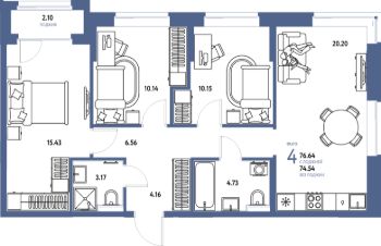 Продаётся 4-комнатная квартира в строящемся доме (Дом "Перспективный" (ГП-28)), срок сдачи: II-кв. 2028, общей площадью 76.64 кв.м., на 14 этаже. Новый микрорайон "Домашний" от группы компаний "Страна Девелопмент" расположен в Калининском округе Тюмени, в районе аэропорта "Плеханово".
