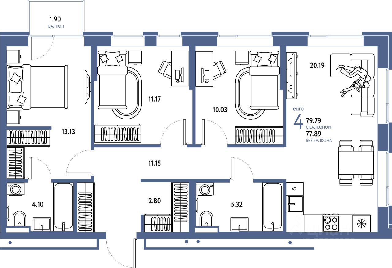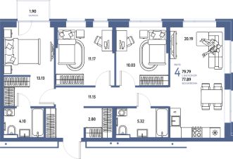 Продаётся 4-комнатная квартира в строящемся доме (Дом "Концептуальный" (ГП-23)), срок сдачи: IV-кв. 2026, общей площадью 79.79 кв.м., на 6 этаже. Новый микрорайон "Домашний" от группы компаний "Страна Девелопмент" расположен в Калининском округе Тюмени, в районе аэропорта "Плеханово".