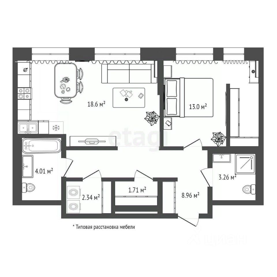 Планировка квартиры — настоящая находка: просторная кухня-гостиная, уютная спальня, два санузла, две гардеробные и постирочная. Здесь есть всё для вашего удобства и комфорта!