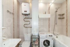 Совмещённый санузел отделан качественным кафелем, а ванна достаточно большая для комфортного отдыха.