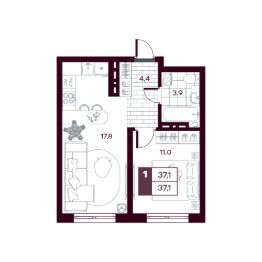 Общая площадь37,11 м²