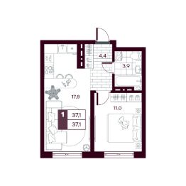 Общая площадь37,11 м²