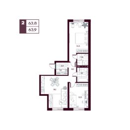 Общая площадь63,86 м²