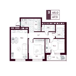 Общая площадь66,98 м²