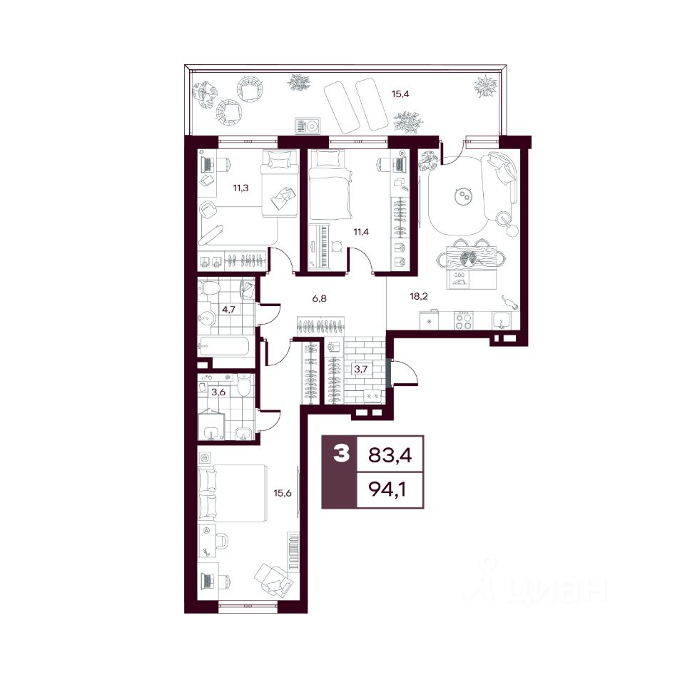 Общая площадь94,66 м²