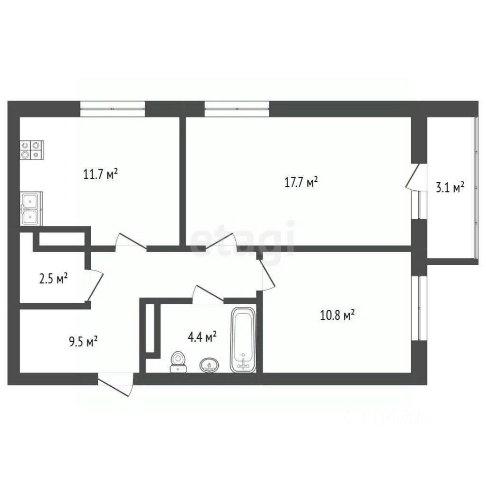 57,5 м²
