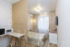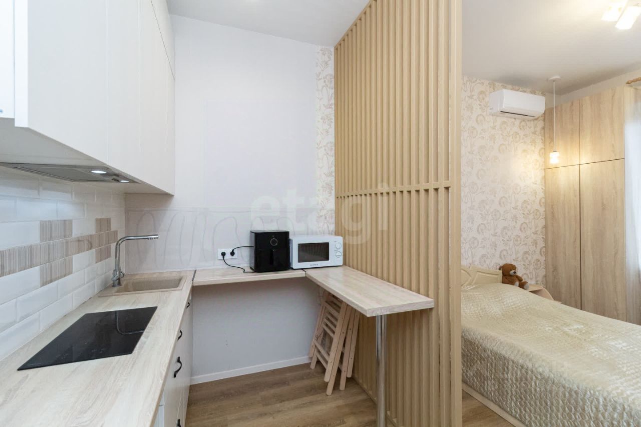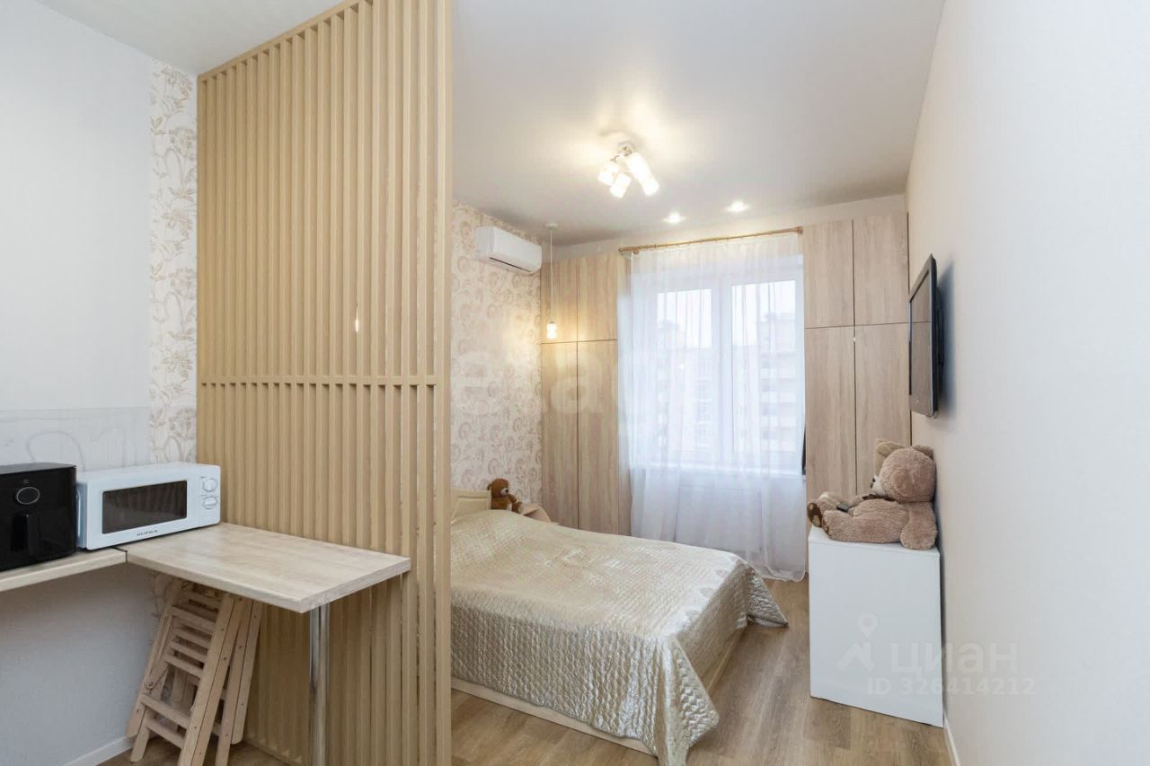Квартира расположена на 18 этаже с потрясающими видовыми характеристиками. Однокомнатная квартира площадью 41,3 м2 поделена на 2 студии при желании можно вернуть все в изначальный вид. Квартира сдается в аренду и ежемесячно приносит 52 тыс рублей. Если вы рассматриваете как инвестицию можем просто переоформить на вас договоры аренды после покупки. Либо может смотрите покупку квартиры для себя или ребенка. То можете жить в просторной студии,а вторую комнату сдавать. В квартире остается вся мебель и техника, которая есть на фотографии.