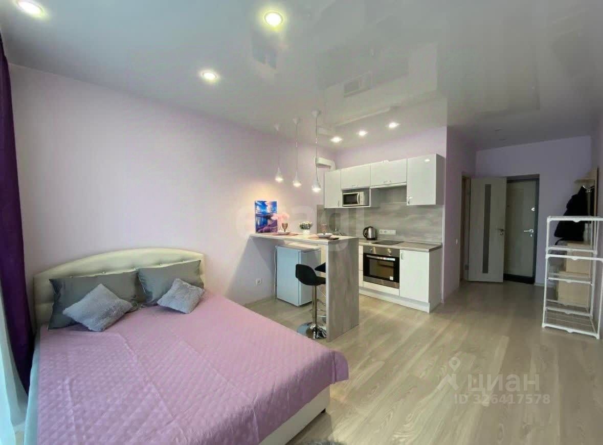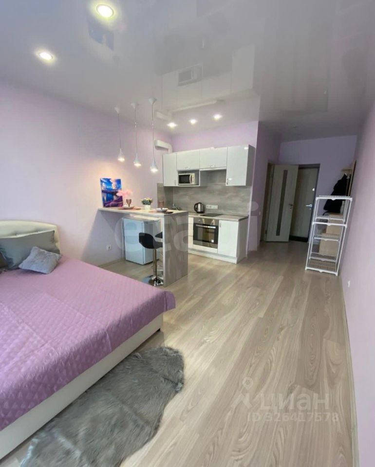 Современная студия с хорошим ремонтом, мебелью и техникой. Идеально для заселения или сдачу в аренду. Хорошее состояние квартиры, аккуратная, позволит заселиться и жить комфортно. Витражное остекление балкона дает много света квартире. На полу ламинат, натяжной потолок, современная плитка в с/ у. Окна во двор, хорошо видно парковку, детскую площадку. Жилой комплекс Олимпия - современный, удобно располагающийся в районе Дом Обороны. В Олимпии есть крупные магазины, салон красоты и много другое. ЖК располагается рядом с Центром, относительно не далеко Строительный Университет, ТЦ на Ямской, ЭКО Парк Затюменский- множество мест отдыха и развлечений, а также Центральная Набережная рядом. Транспортная развязка хорошая. При продаже остается все, что на фотографиях , кроме TV и микроволновой печи.