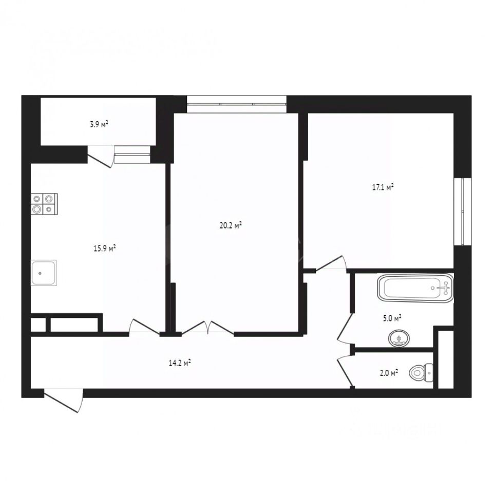 **Формат 2** — две просторные спальни кухня-гостиная