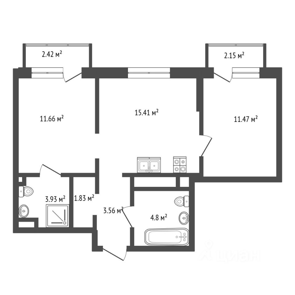 Предлагаем вашему вниманию 2 комнатную квартиру общей площадью 57,23 кв. м. Это идеальное место для комфортной жизни, где вам не придется выбирать между качеством и удобством. Сдача квартиры запланирована на 3 квартал 2025 года.