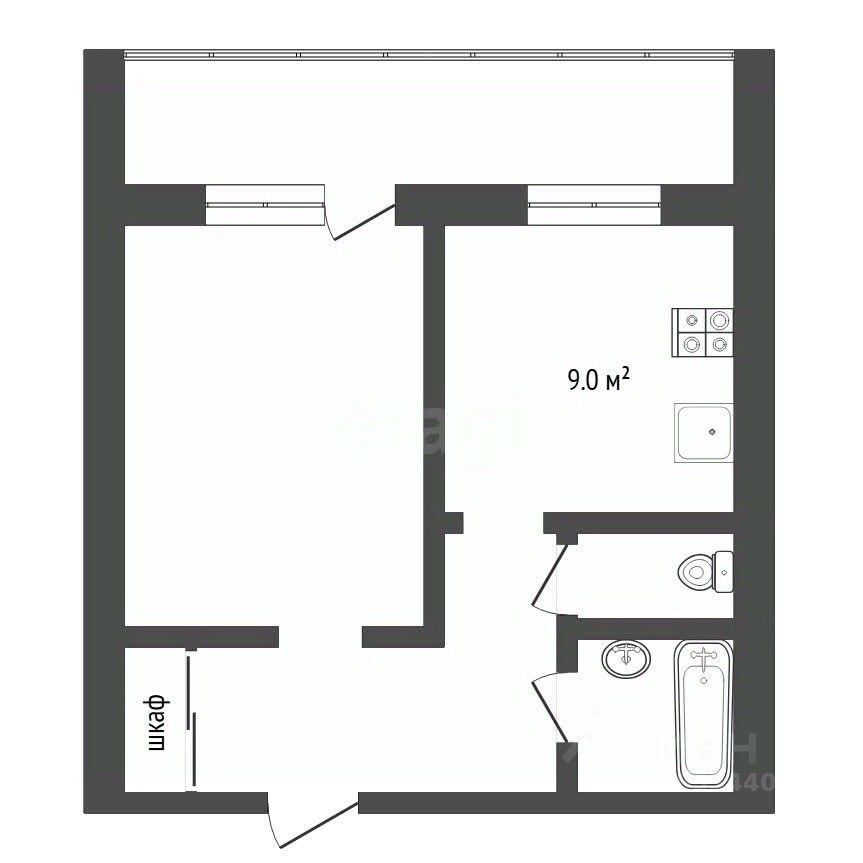 Планировка: Изолированная комната, кухня, спальня, раздельный санузел.