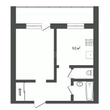 Предлагаем Вашему вниманию 1-комнатная квартира 33.9 м² с косметическим ремонтом в кирпичный дом, Тюменский-2.