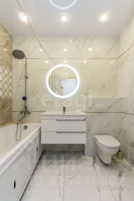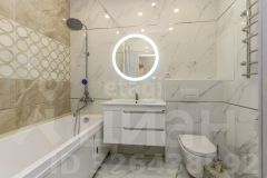 Санузел оборудован качественным керамическим покрытием, обеспечивая гигиеничность и долговечность интерьера.