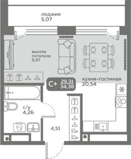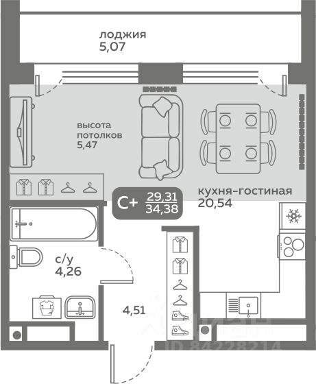 Прямая продажа от застройщика! Продается студия в строящемся ЖК "Меридиан Слобода", срок сдачи: I-кв. 2027, общей площадью 29.31 м², на 20 этаже из 20. Площадь кухни — 20.54 м².