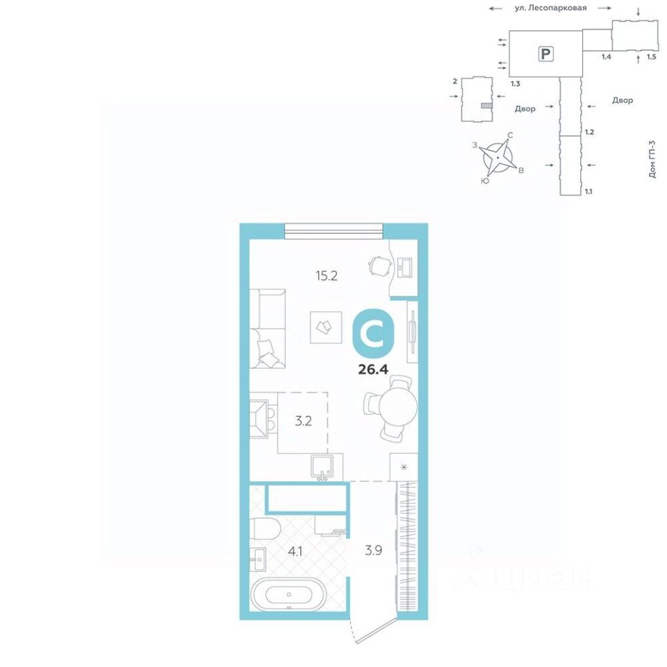 Квартира располагается в ГК "Чистые Пруды" от "Паритет девелопмент". Это флагманский проект компании в Тюмени.