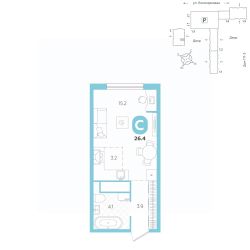 площадь квартиры - 26,4 кв.м