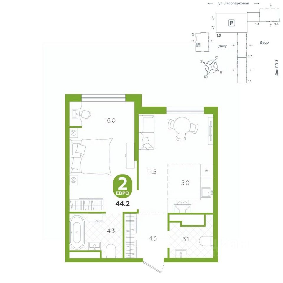 Квартира располагается в ГК "Чистые Пруды" от "Паритет девелопмент". Это флагманский проект компании в Тюмени.