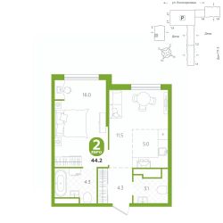 площадь квартиры - 44,2 кв.м