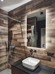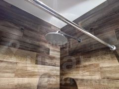 Совмещенный санузел оборудован качественным керамическим покрытием, обеспечивая гигиеничность и долговечность интерьера.